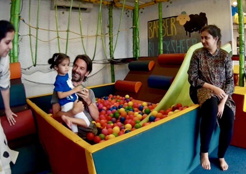 "After our visit to NYC, Markus came to India multiple times for intensives. He trained our family and support staff in how to best interact with Nivu and adjusted almost every aspect of her day in some way to better suit her and us. He trained our OT's and Floortime psychologists that he found in our area and built a team to work with her. He also set up a beautiful gym inside our home and another swing and play space on our balcony which she loved. The following year he designed a sensory gym inside the local OT centre for her and so many more children." - Gayatri, mother of Nivu in Delhi